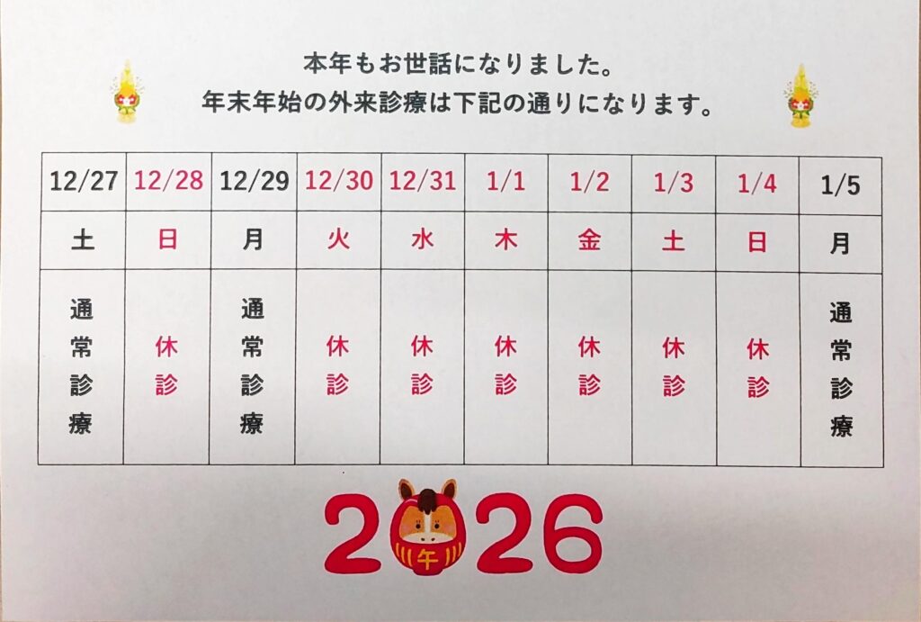 新年は、2026年1月5日(月)より通常通り診療を開始いたします。