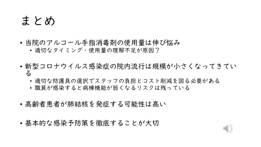 テーマは「院内感染対策の状況と結核のはなし」でした。